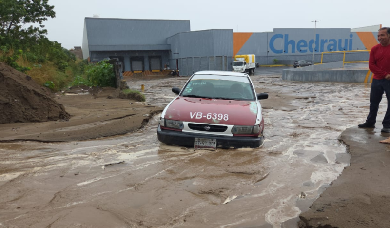 Al norte de Veracruz, en Río Era, entre Camino Real y Camino Chumpan, una camioneta se quedó varada, también en Río Medio un señor se cayó en medio de la calle, personas que se encontraban en el sitio lo auxiliaron porque la corriente era muy fuerte.