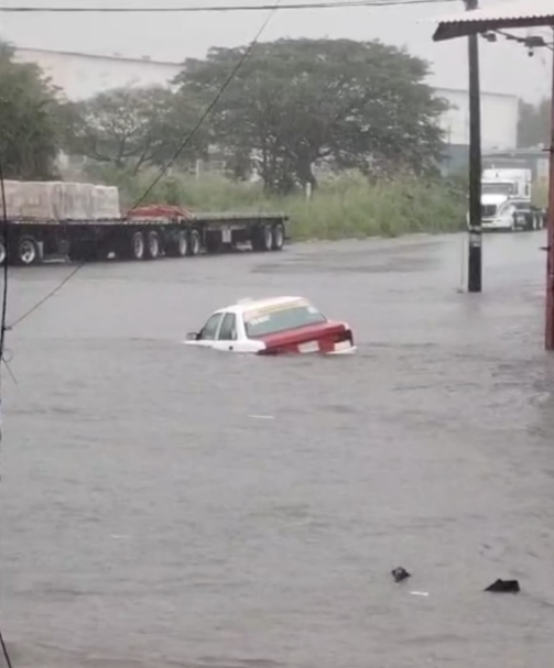 El fraccionamiento Floresta como cada lluvia se inundó, en Tejería, la zona principal resultó con más de medio metro de agua, un taxi quedó varado bajo el agua.