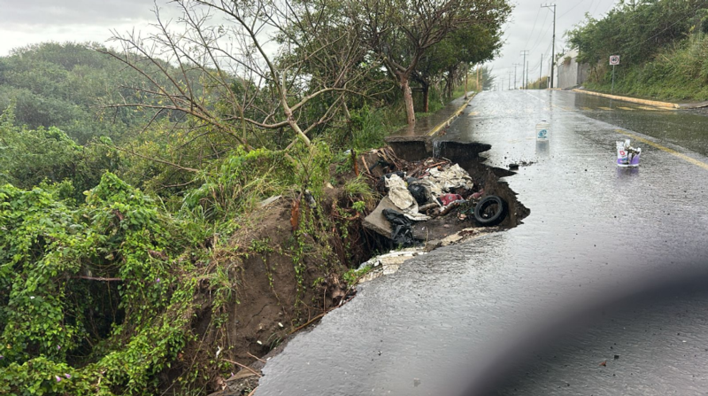 En el fraccionamiento Ponti se registró un deslave que dejó en medio del lodo a un taxi varado, y en la zona donde un alud de tierra se deslavó, un volteo afectado.