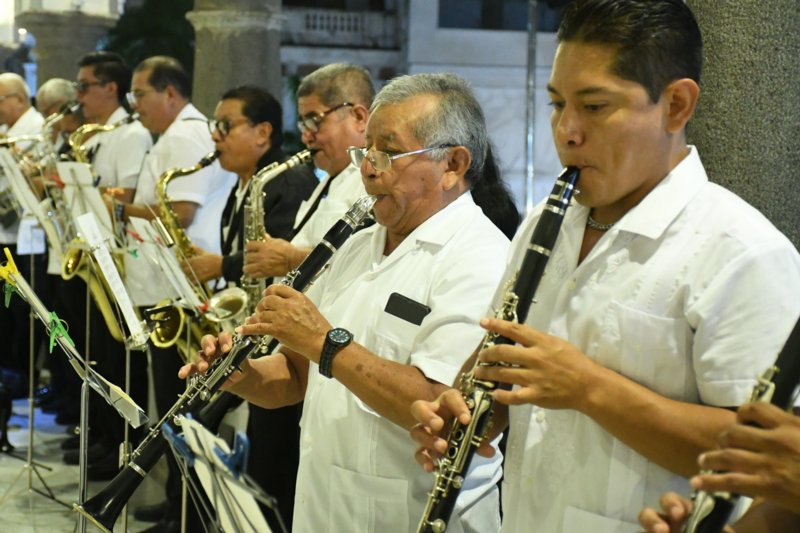 La Banda de Música Municipal del Ayuntamiento de Veracruz fue la encargada de amenizar la bienvenida y de interpretar diversas piezas, como gesto de reconocimiento a los premiados.