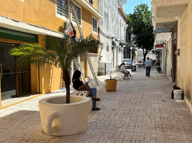 Las bancas de metal que quitaron del zócalo de Veracruz antes de la remodelación, fueron colocadas en los callejones aledaños a la avenida Independencia.