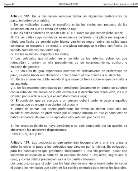 Artículo 106 del Reglamento de Tránsito de Veracruz, vigente desde 2018: