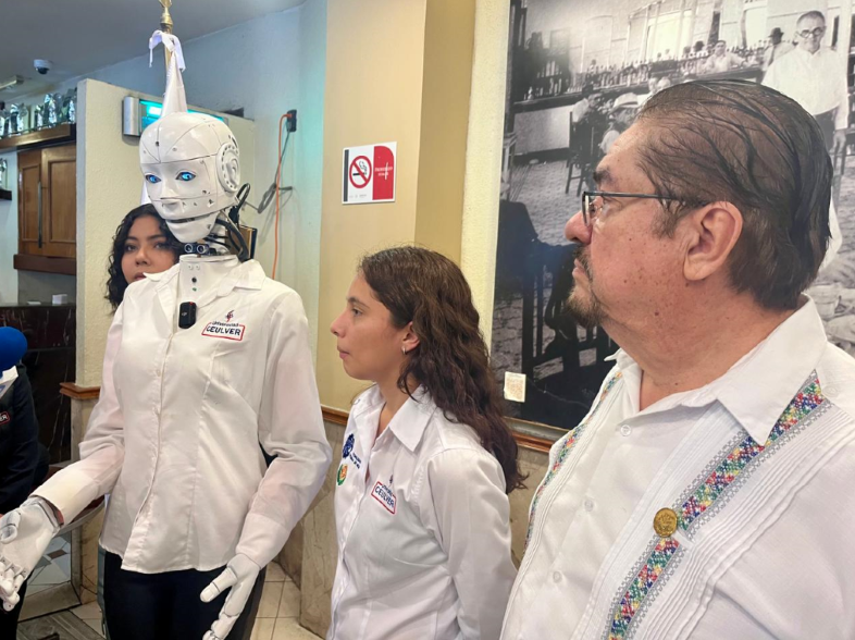 En el ámbito social, Valeria presentó a Conia, un robot con inteligencia artificial diseñado para asistir a adultos mayores con debilidad visual o dificultades de lectura, además de brindar acompañamiento emocional.