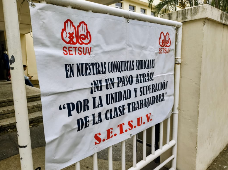 Esta mañana de martes, trabajadores de la Universidad Veracruzana (UV), adheridos al Sindicato Estatal de Trabajadores al Servicio de la Universidad Veracruzana (SETSUV) se manifestaron en la Facultad de Medicina.