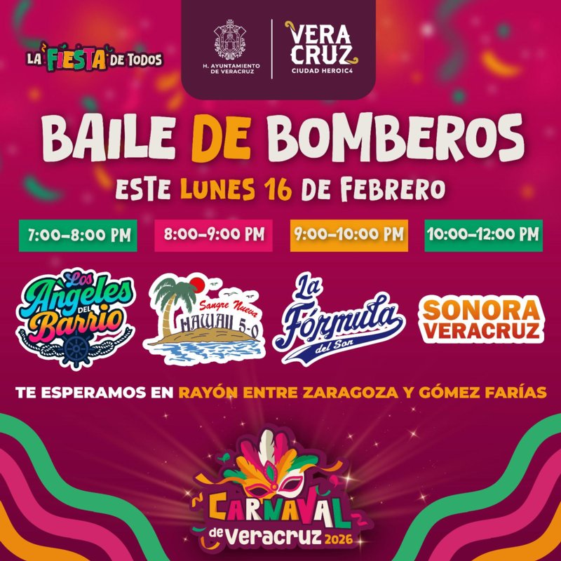 Será a las 8 de la noche la presentación de varios grupos musicales: la orquesta Sangre Nueva Hawaii 5.0, Ángeles del Barrio, La Fórmula del Son y la Sonora Veracruz.
