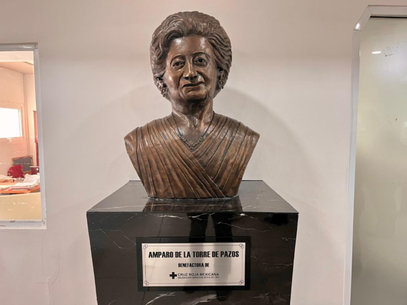 En la sala de consultas y especialidades, ubicado en la planta alta de la Cruz Roja, delegación Veracruz-Boca del Río, se develó un busto de bronce de la mayor benefactora de la institución, doña Amparo de la Torre de Pazos.
