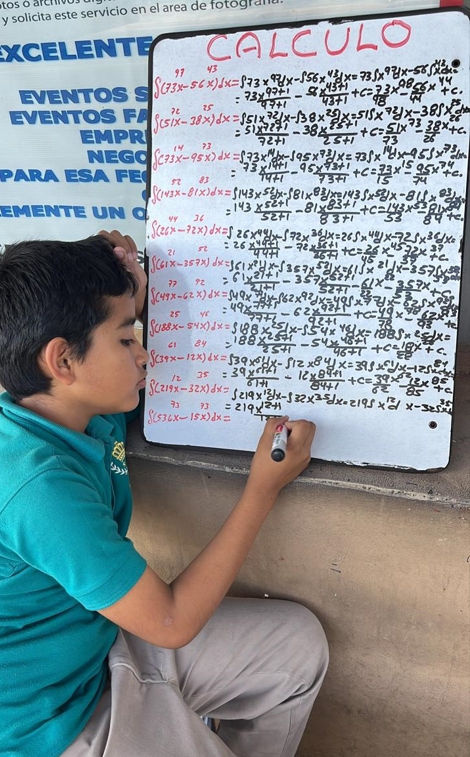 Axel Tadeo Rosas Molina, de 10 años de edad, va en sexto año de primaria, concursó en una competencia estatal de matemáticas y obtuvo el primer lugar.