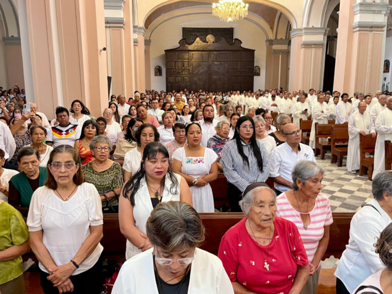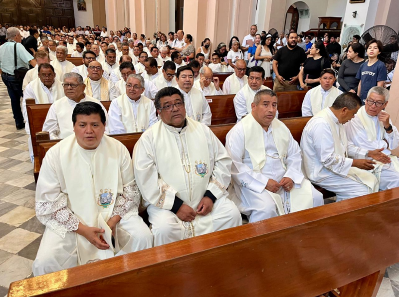 En presencia de los más de 100 sacerdotes de la diócesis de Veracruz, se realizó la misa crismal en la catedral.